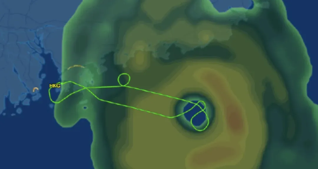 根据实时飞行器飞行状况数据,这架飞机今天(23日)已执飞两次,第二次飞行于14时31分成功返程降落,其间多次冲进桦加沙的核心区域进行台风气象探测。